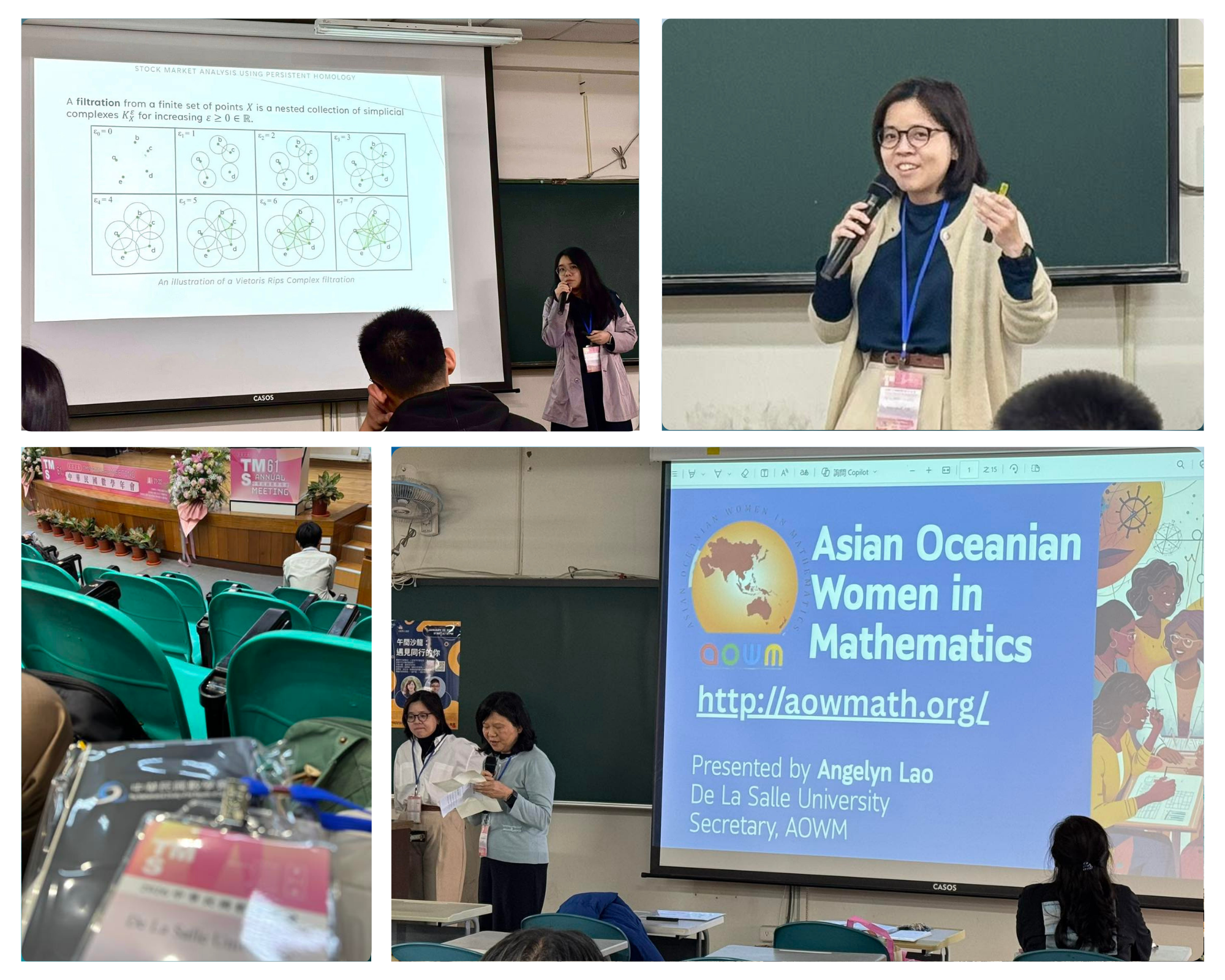 The 61st annual meeting of the Taiwan Mathematical Society was held from January 21-22, 2026, at the National Chung Cheng University, Taiwan. SComB members Dr. Angelyn Lao and Lara Gabrielle Lim presented their works on “Asian Oceanian Women in Mathematics” and “Stock Market Analysis using Persistent Homology”.